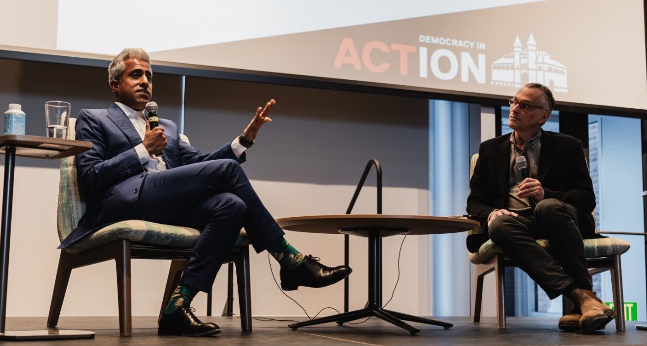 The conference came to a close with a conversation with Anand Giridharadas, who made a passionate case for becoming a persuader in one’s civic life. By this he means listening deeply and finding points of contact between one’s own views and the views of people who differ from you. He argued that if we want to protect our democracy from the forces of authoritarianism, we must appeal to the emotions of people who feel the system has failed them, or just feel adrift in our rapidly changing world. By authentically connecting across differences while making the case for a more democratic and inclusive future, we might be able to resist the forces eroding our democratic norms and potential.