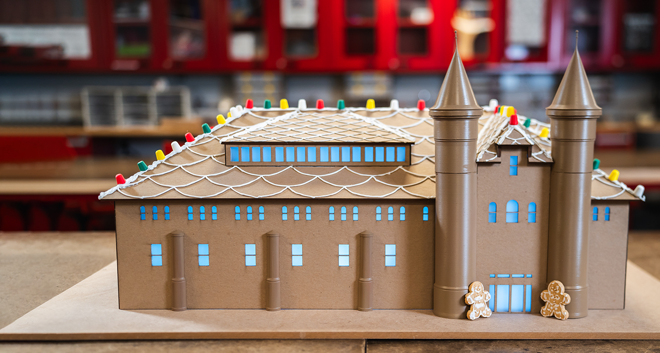 With Fall semester classes coming to a close and temperatures dipping below freezing, Wesleyan’s annual holiday greeting ushers in the end of the year with warm wishes and good cheer. This year’s greeting offered a whimsical take on iconic Fayerweather and the boundless imagination of our students. But instead of fairy godmothers, magical elves, or benevolent spirits working while the campus slept, a team of students, College of Design and Engineering Studies (CoDES) staff, and University Communications captured the magic of the season as only Wesleyan could—with some campus inspiration, CoDES ingenuity, and a ton of makerspace fun. Read on for a behind-the-scenes look at the making of the 2025 Wesleyan holiday video.
